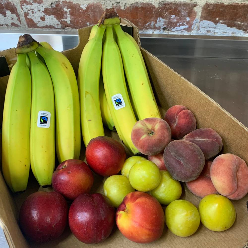 Large organic fruit box, depending on what's in season, normally around 20-25 pieces of fruit.